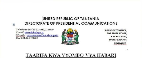 Imetolewa na: Kurugenzi ya Mawasiliano ya Rais,